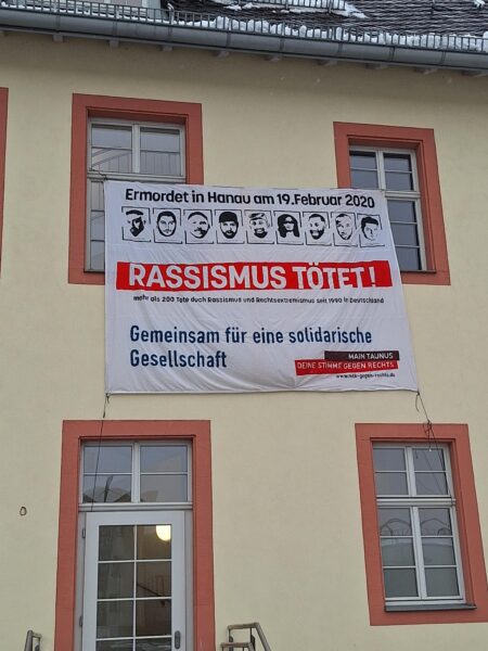Kommt gerne auch dazu, wenn Ihr erstmal noch nicht am Infostand stehen möchtet. Die Kommunalwahlflyer sollten bis dahin druckfrisch vorliegen, Ihr könnt sie dann gleich mitnehmen. Der Solidarische Raum ist ein offenes Treffen für Austausch und Diskussion. Jeden ersten Montag im Monat ab 19 Uhr im Bürgerhaus Marxheim (Hintereingang /Jugendraum). - Großplakate Dank Eurer Spenden können vor der Wahl drei Großplakate »Hier ist kein Platz für Rechtsextremismus – Gemeinsam für eine demokratische und solidarische Gesellschaft« hängen, und zwar vom 6. bis zum 16. März in Hofheim (Ecke Schmelzweg/Hattersheimer Straße), Flörsheim (Ecke Raunheimer Straße/Frankfurter Straße) und in Schwalbach. Vielen Dank für Eure Unterstützung.