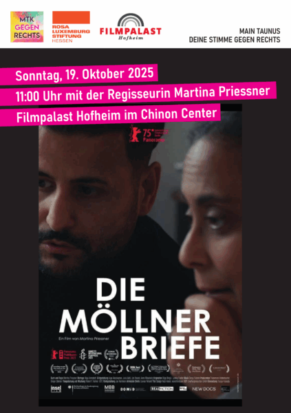 Bereits jetzt möchten wir auch auf die Kinovorführung des vielfach ausgezeichenten Films »Die Möllner Briefe« hinweisen. Am Sonntag, 19. Oktober, ab 11 Uhr zeigen wir ihn in Kooperation mit dem Hofheimer Kino Filmpalast. Bei der Matineee wird Regisseurin Martina Priessner zu Gast sein.